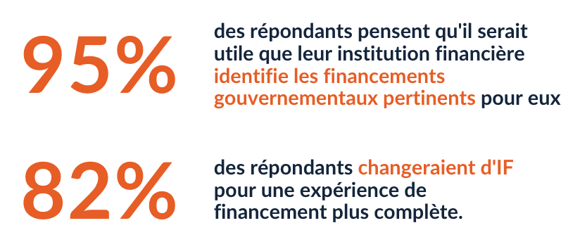 La faible adoption des technologies de recherche de financement telles que Fundica par les répondants présente une opportunité unique pour les organisations de soutien aux entrepreneurs (OSE), telles que les institutions financières, d’améliorer leur offre de services en intégrant des moteurs de recherche de financement dans leurs sites Web. Grâce à un outil de recherche de financement tel que Fundica, les OSE peuvent aider les petites et moyennes entreprises à trouver des financements pertinents, favorisant ainsi des relations positives et les convertissant potentiellement en clients.